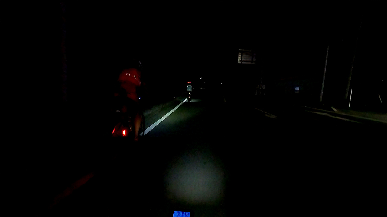 ブルベだと深夜に街灯が殆ど無いこともあって、状況によってはどちらかのライトの輝度を上げるなどして視界の確保をしていました。いや実はこれかなり重要で、ある程度年齢が行くと余計に分かってくるのですが、先が見えないと速度を上げることに恐怖心からのためらいが生まれ大きなペースダウンになり、先だけをスポットで照らすと手物のギャップが見えにくくなりこれまたペースダウンになります。