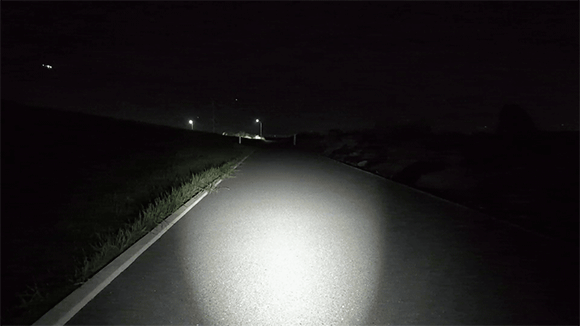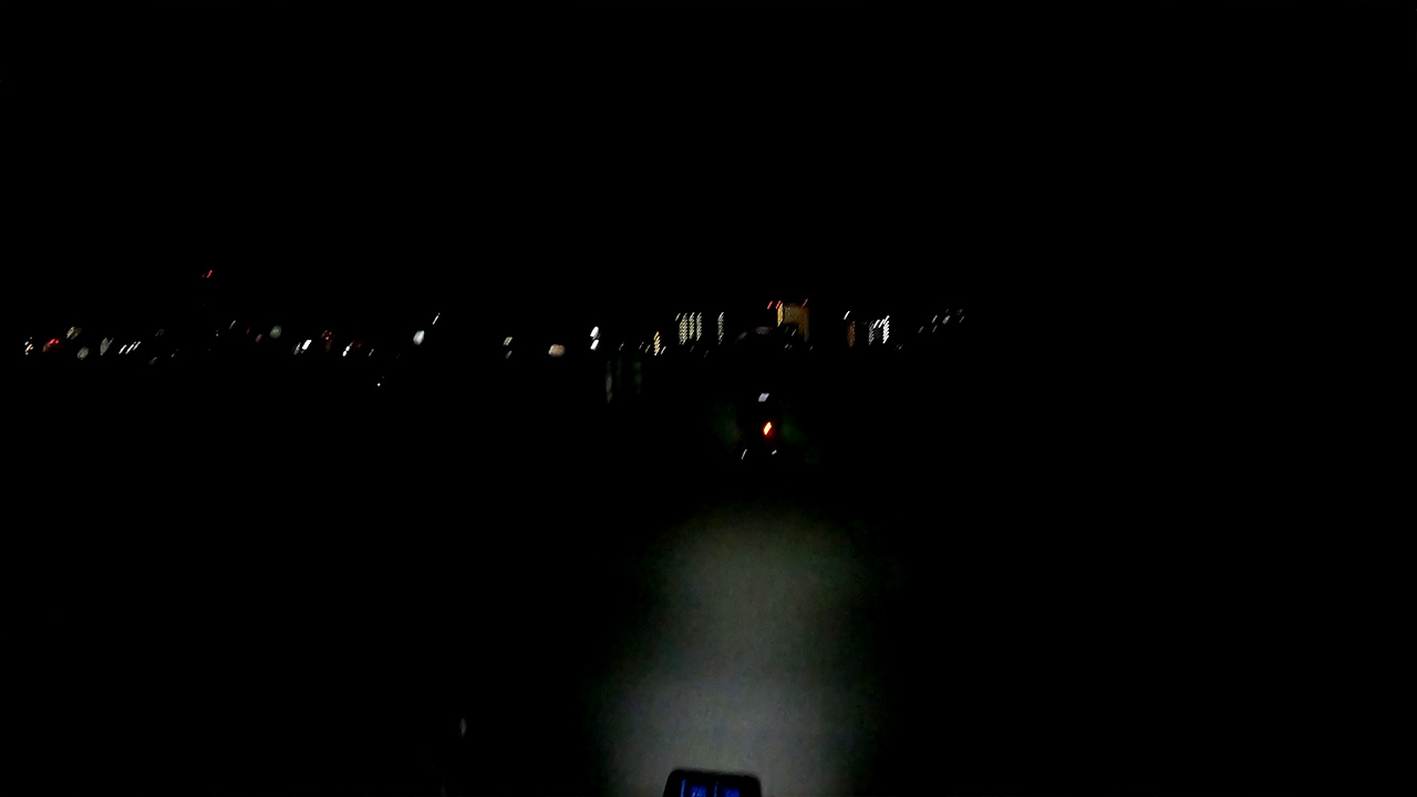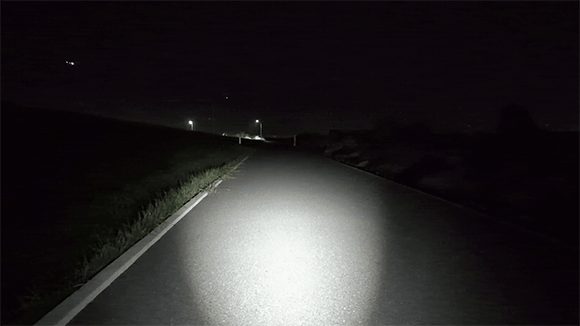 しかし、このDL1200Sは1灯で程良く中距離を照らし丸みがかった配光で足元もちょうど良い範囲にカバーしてくれます。LOWの設定で真っ暗の中を全開走行をするほどは流石に難しいですがペースを落とさない程度に走ることはできるくらい視界が確保できるのでストレスなく走れました。これは驚きでしたね~