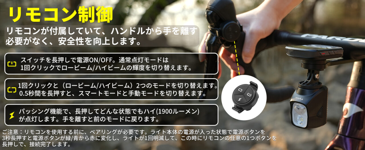 リモコンは今後もっとあって当たり前の機能になっていくと良いなと思いますね。サイコンと連動しているものも出てきているようで個人的にはパッシング(ハイビーム)の利便性は本当に有益です。